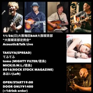 2023/11/26(Sun)ACT:MICK(O.W.L.) SO16(ROCK STOCK MAGAZINE) あおい(Left) tomo(Mighty Filter) てふてふ TAKUYA(SPREAD)